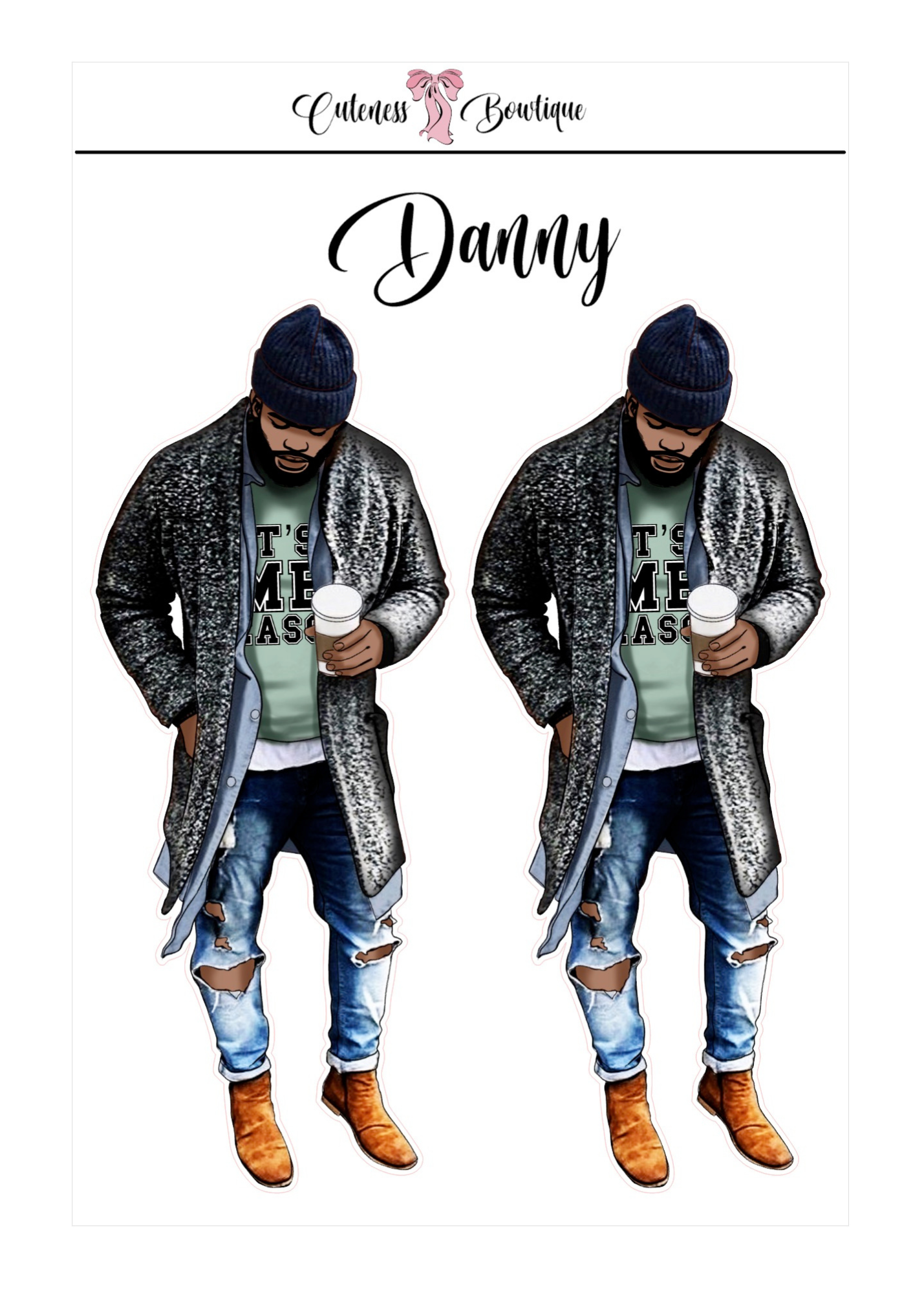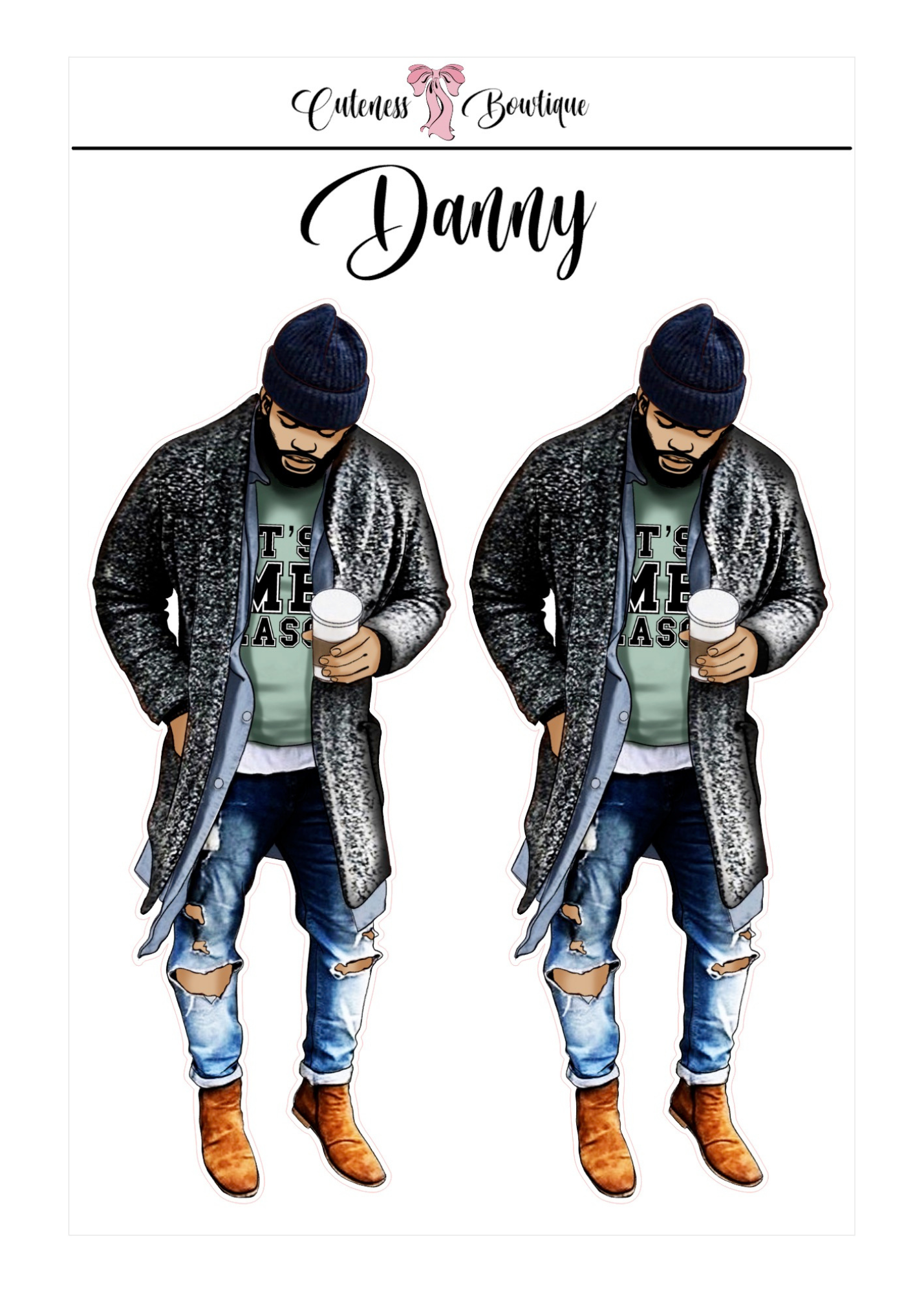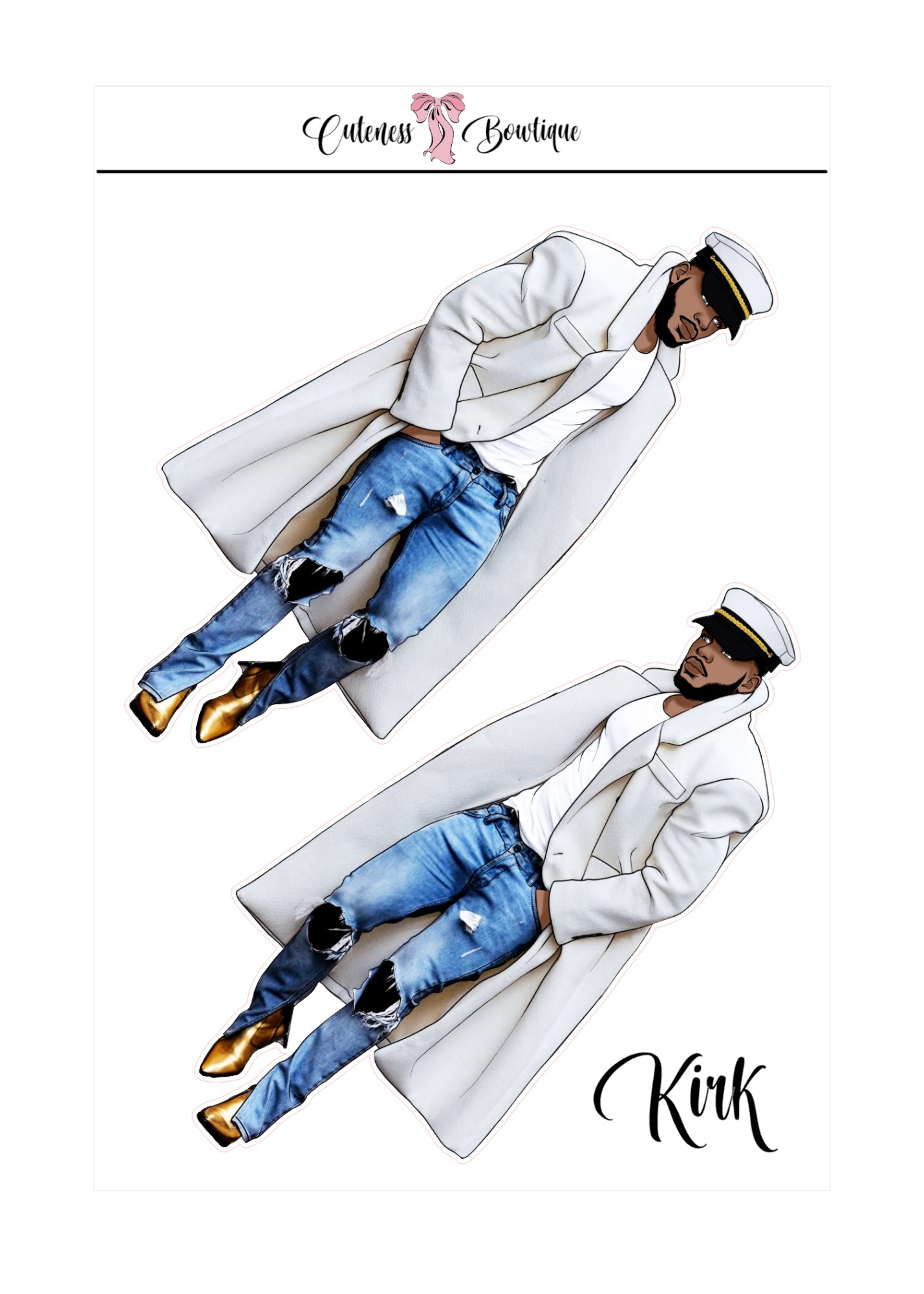 The CUSTOM Cuteness Doll Collection Sticker Sheet | Cuteness Planner Stickers for Agendas, Planners, Notebooks, Dividers | DANNY, BLISSFUL, KIRK, NAOMI, NOELLE, XENA, TUCKER, NOVA