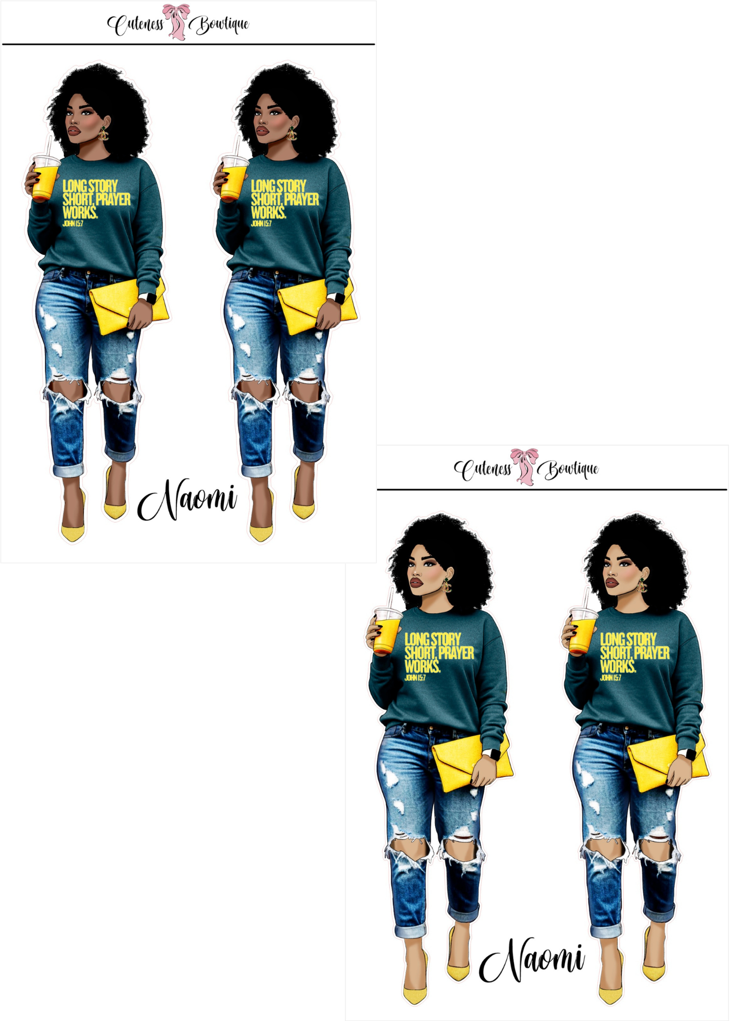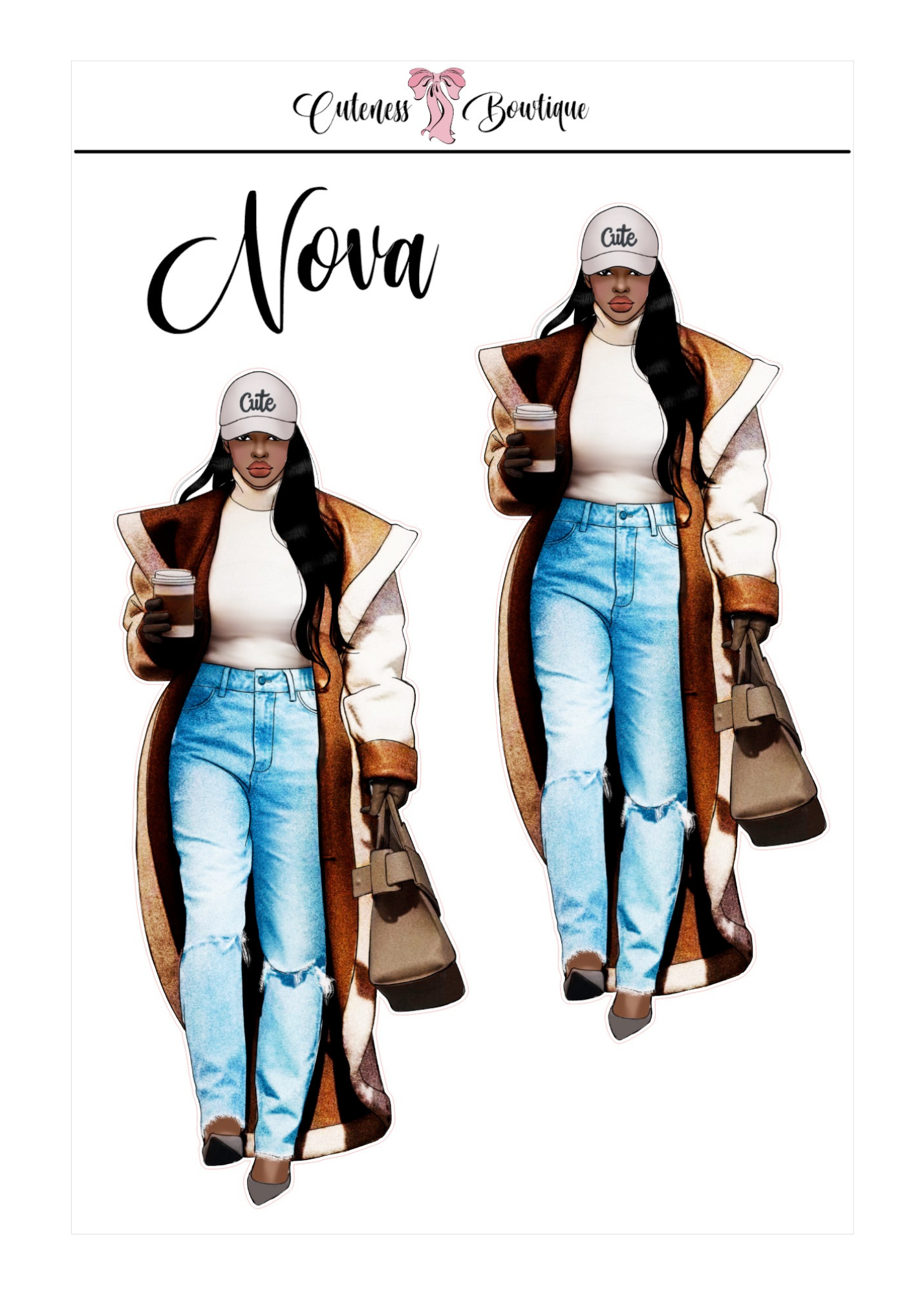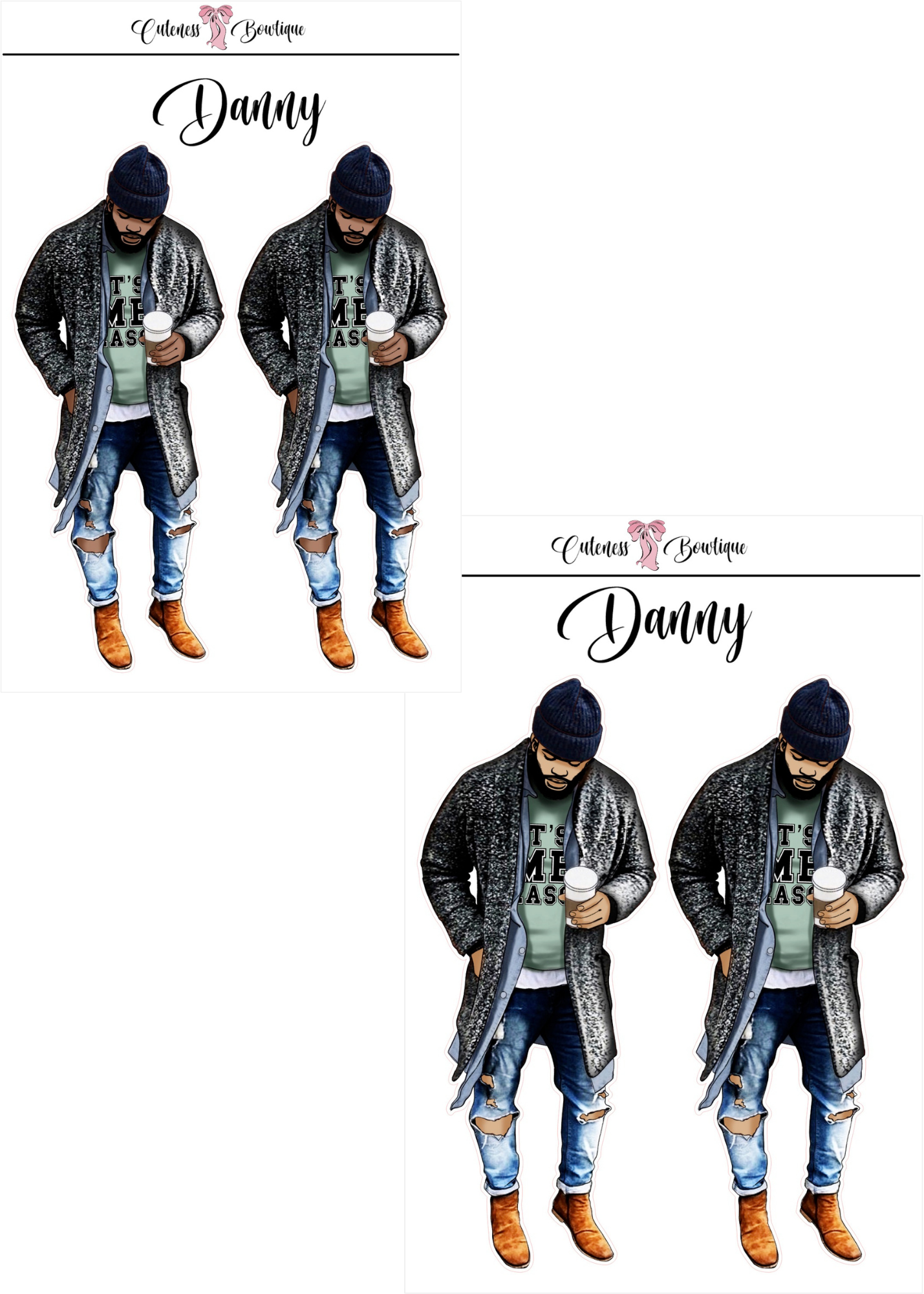 The CUSTOM Cuteness Doll Collection Sticker Sheet | Cuteness Planner Stickers for Agendas, Planners, Notebooks, Dividers | DANNY, BLISSFUL, KIRK, NAOMI, NOELLE, XENA, TUCKER, NOVA