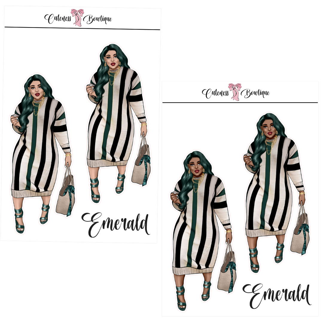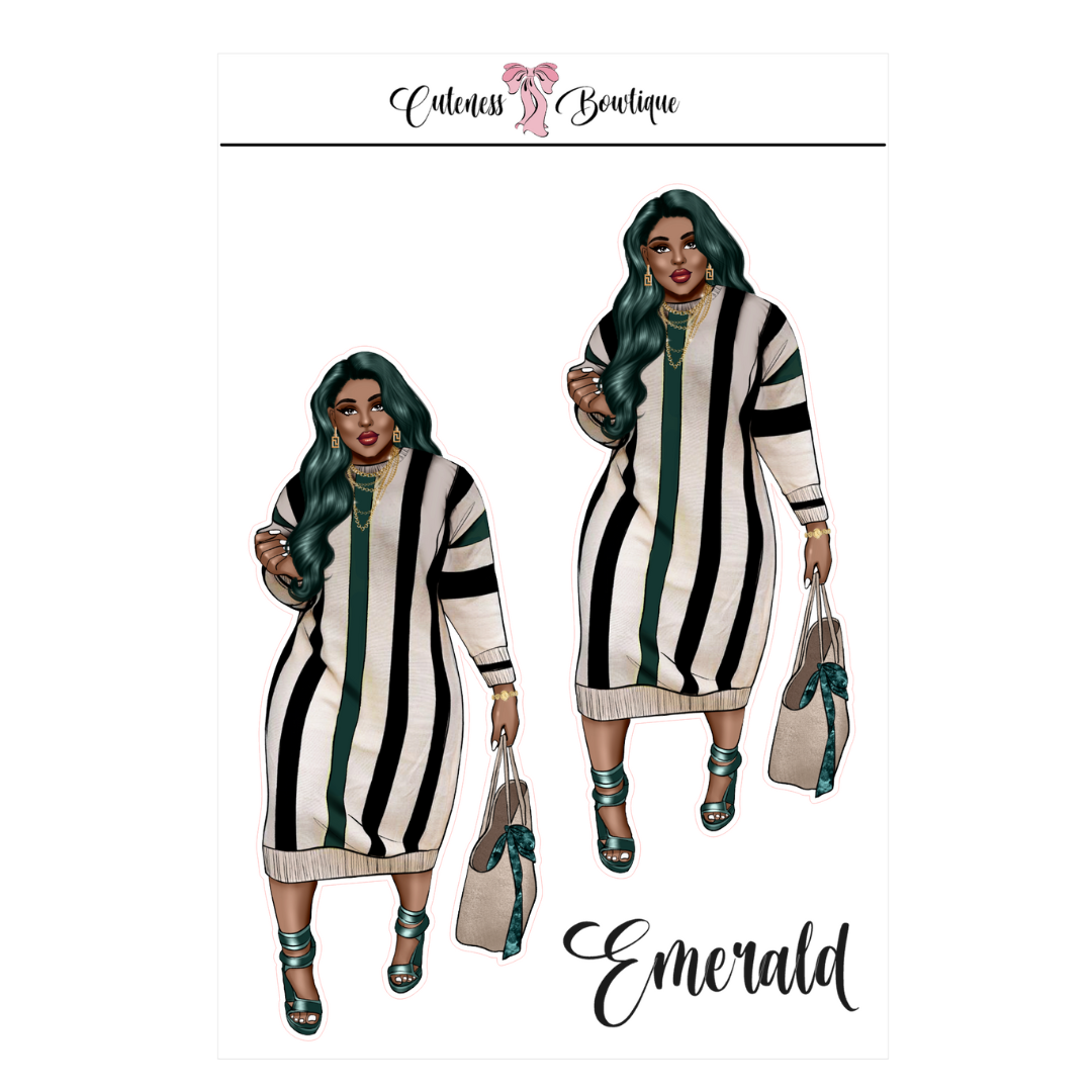 The CUSTOM Cuteness Doll Collection Sticker Sheet | Cuteness Planner Stickers for Agendas, Planners, Notebooks, Dividers | EMERALD
