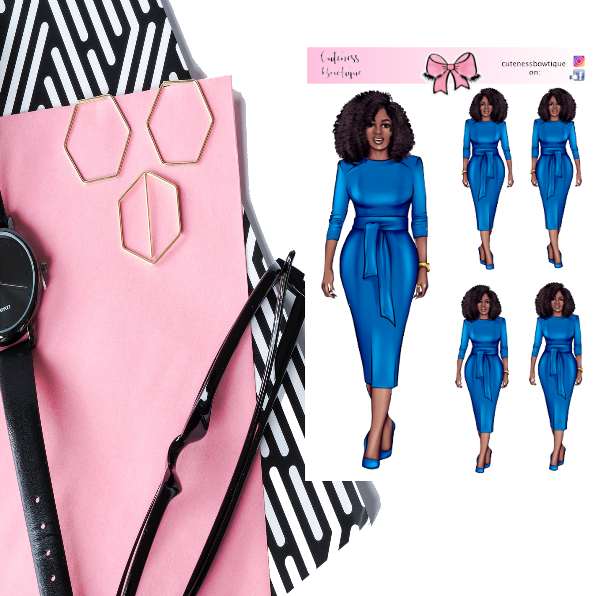 The Cuteness Doll Collection Sticker Sheet | Cuteness Planner Stickers for Agendas, Planners, Notebooks, Dividers | ALAINA ROYAL BLUE DRESS