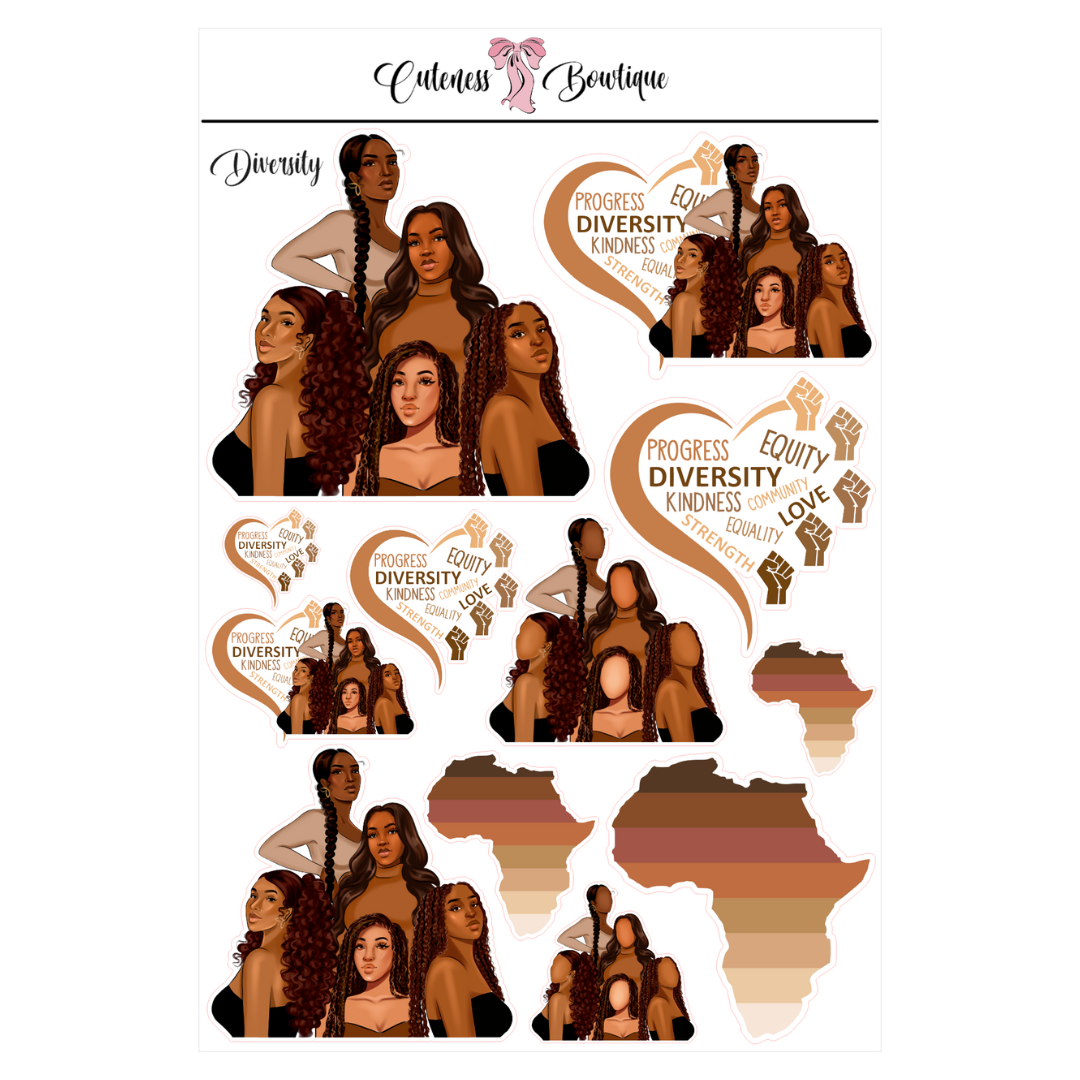 The Cuteness Doll Collection Sticker Sheet | Cuteness Planner Stickers for Agendas, Planners, Notebooks, Dividers | DIVERSITY