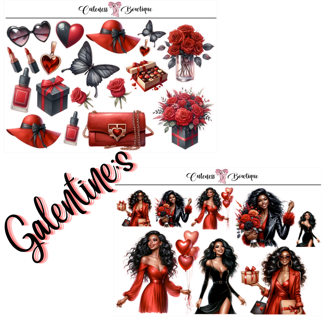The Cuteness Doll Collection Sticker Sheet | Cuteness Planner Stickers for Agendas, Planners, Notebooks, Dividers | GALENTINE'S