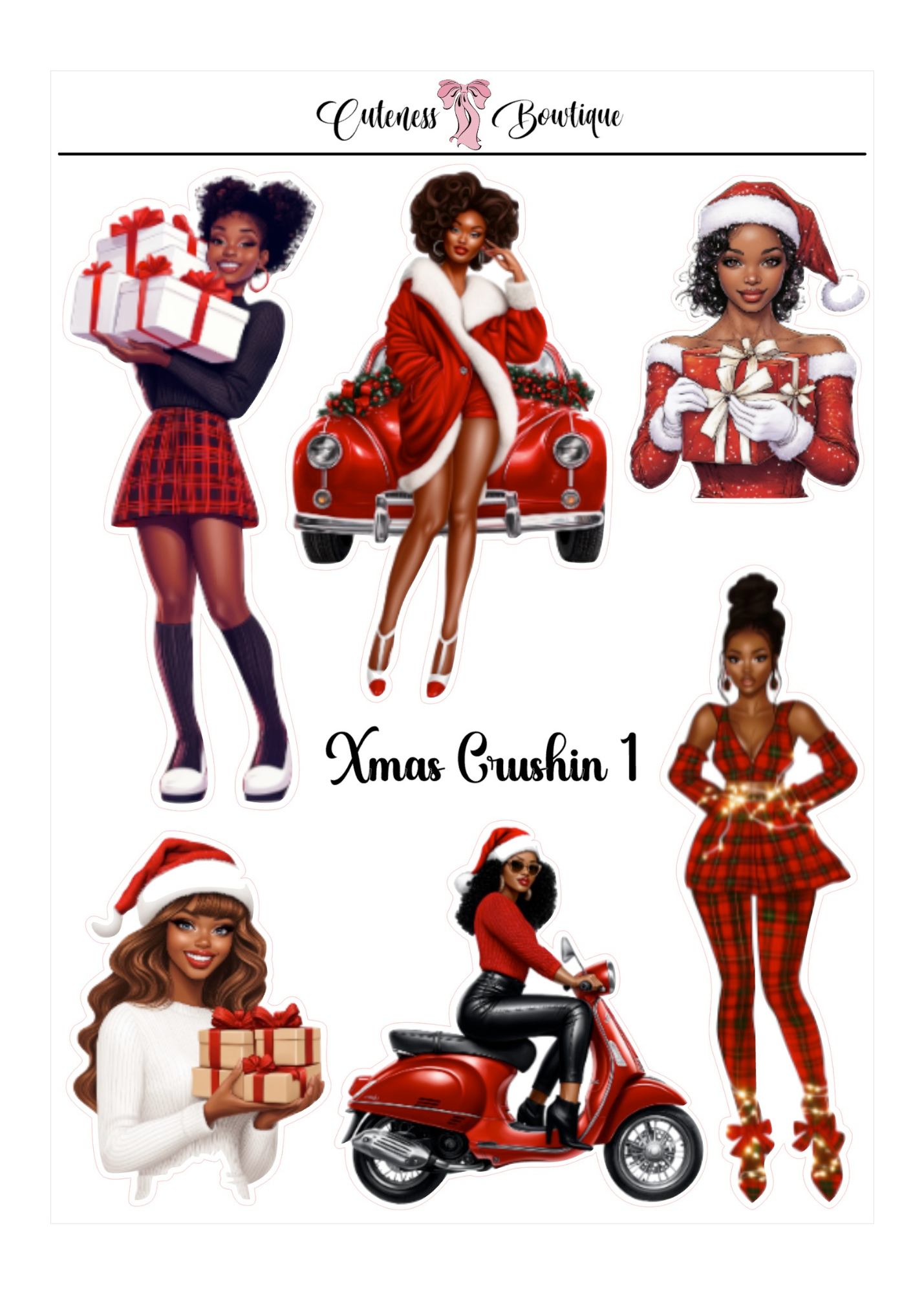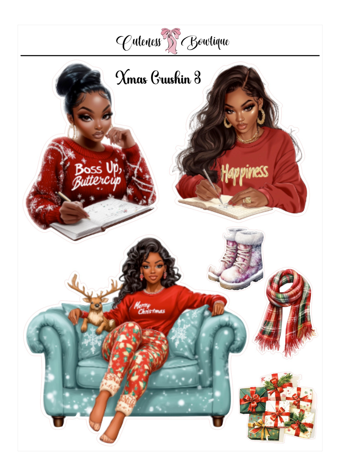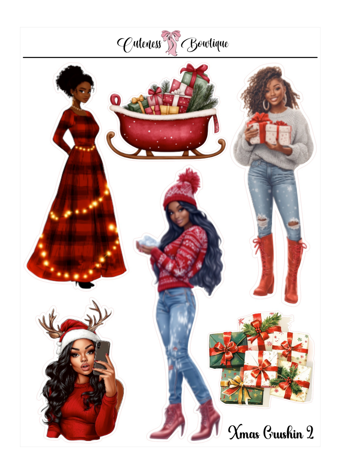The Cuteness Doll Collection Sticker Sheet | Cuteness Planner Stickers for Agendas, Planners, Notebooks, Dividers | XMAS CRUSHIN 1-3