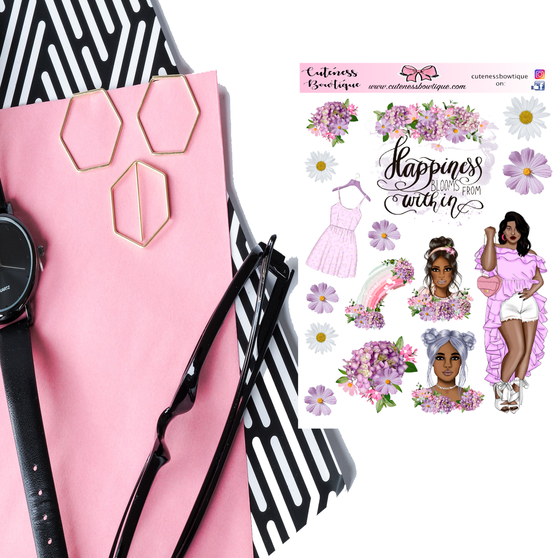 The Cuteness Journaling Sticker Sheet | Cuteness Planner Stickers for Agendas, Planners, Notebooks, Dividers BLOOM