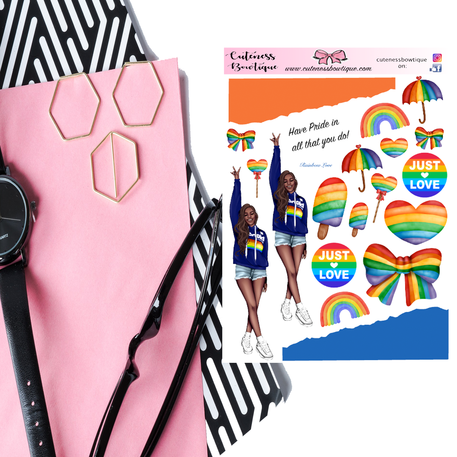 The Cuteness Journaling Sticker Sheet | Cuteness Planner Stickers for Agendas, Planners, Notebooks, Dividers | RAINBOW LOVE