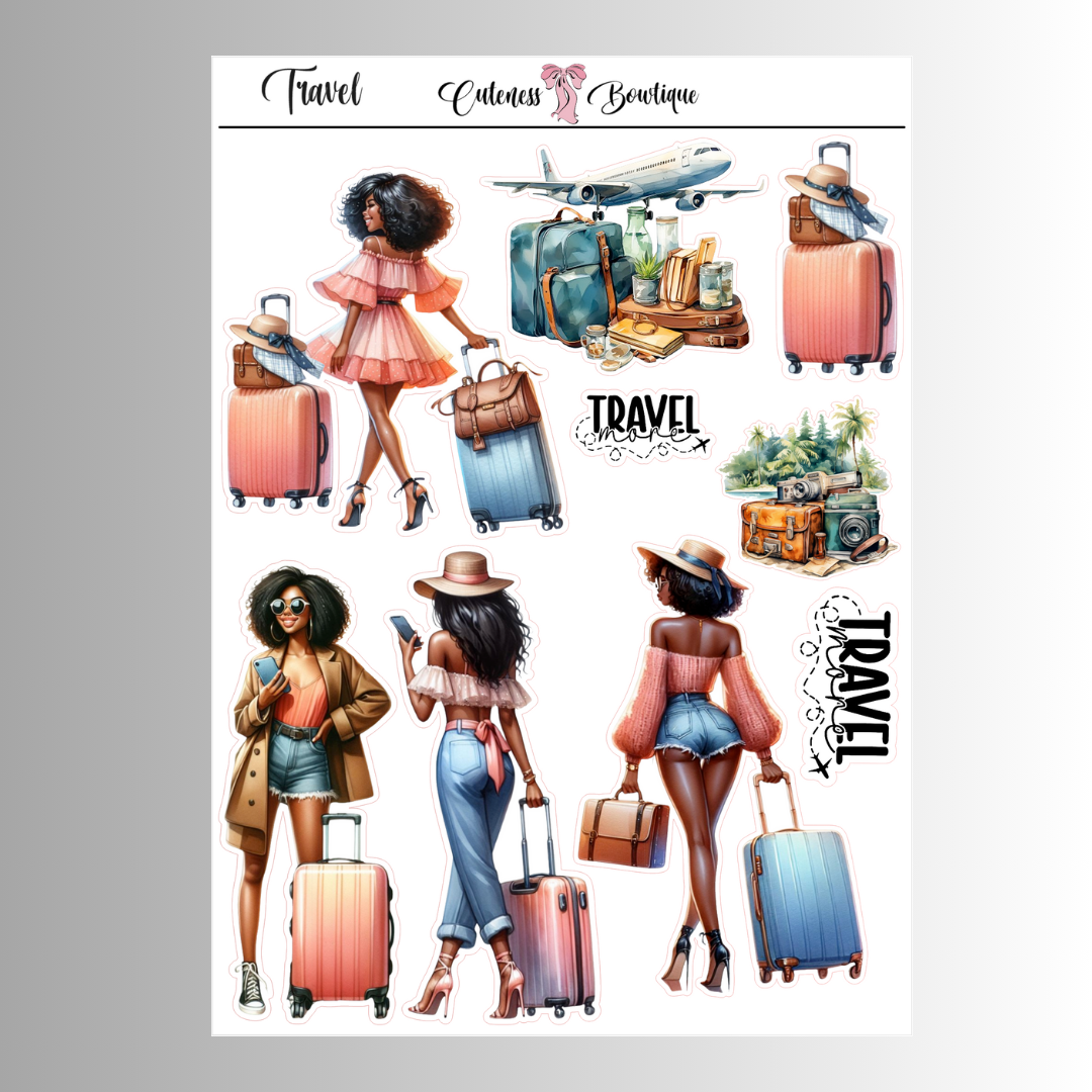 The Cuteness Journaling Sticker Sheet | Cuteness Planner Stickers for Agendas, Planners, Notebooks, Dividers | TRAVEL
